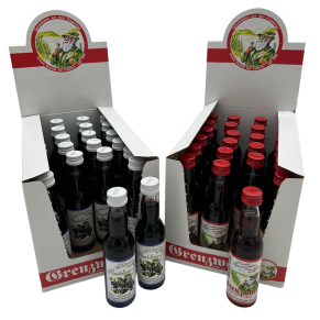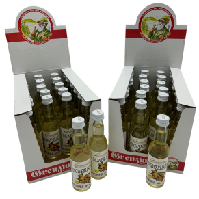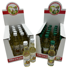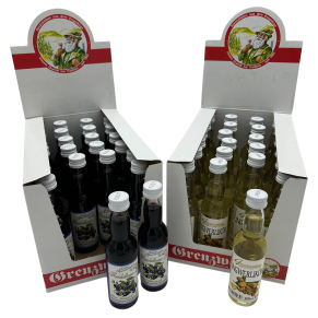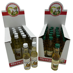 2 Displaykartons mit jeweils 24 Flaschen 0,04cl aus 4 verschiedenen Likörvarianten zur Auswahl.